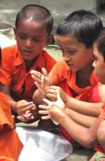 Two years ago I visited Bangladesh and talked to children about handwashing. Children in remote areas as well as cities were already well aware of the importance of handwashing with soap. They explained "Clean hands save lives," and they told me that if soap was not available they used ash—collected after cooking over a wood fire.